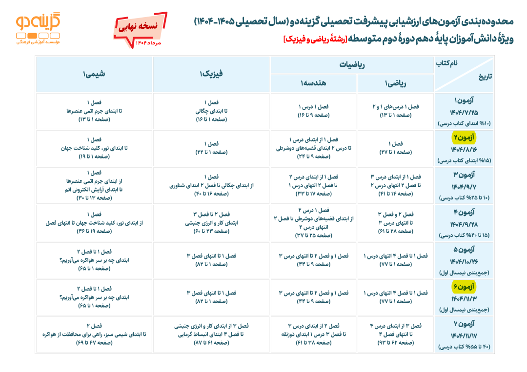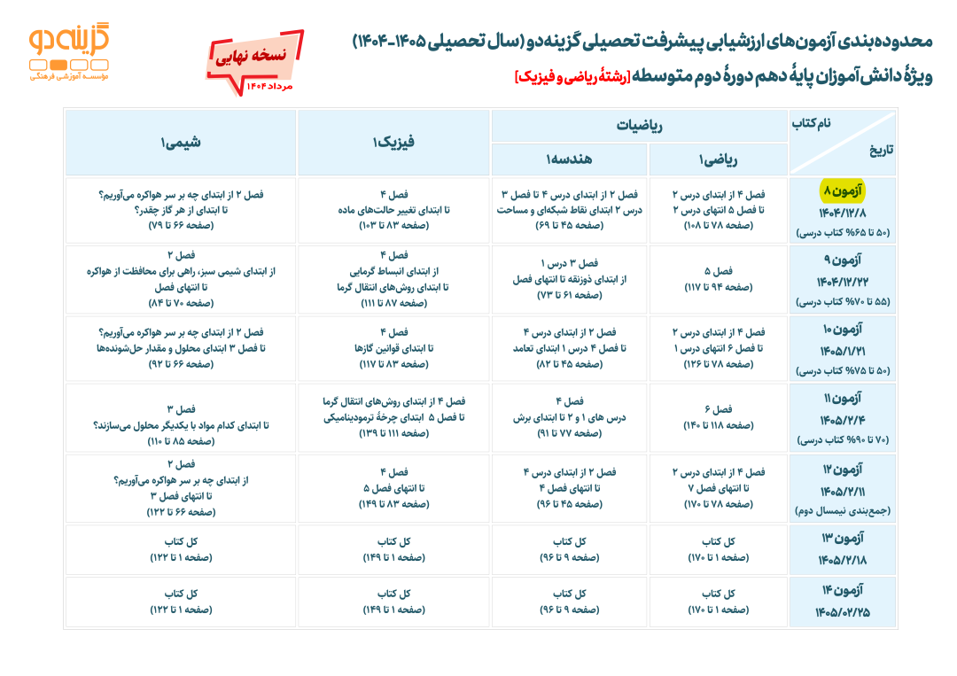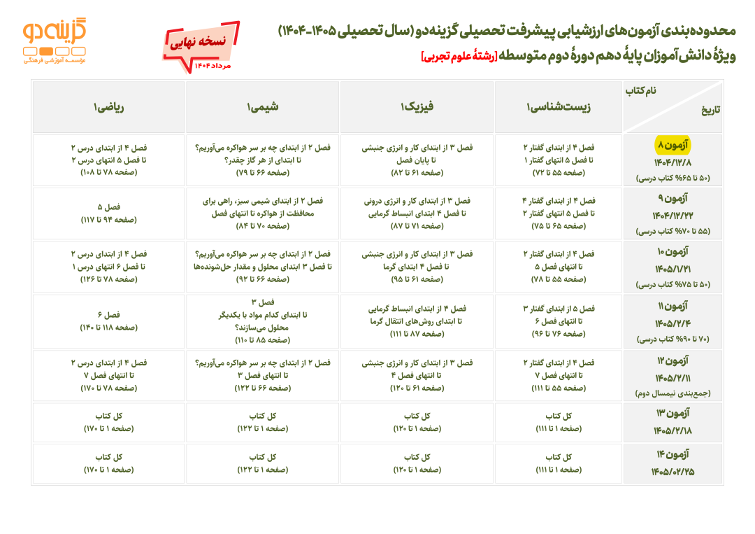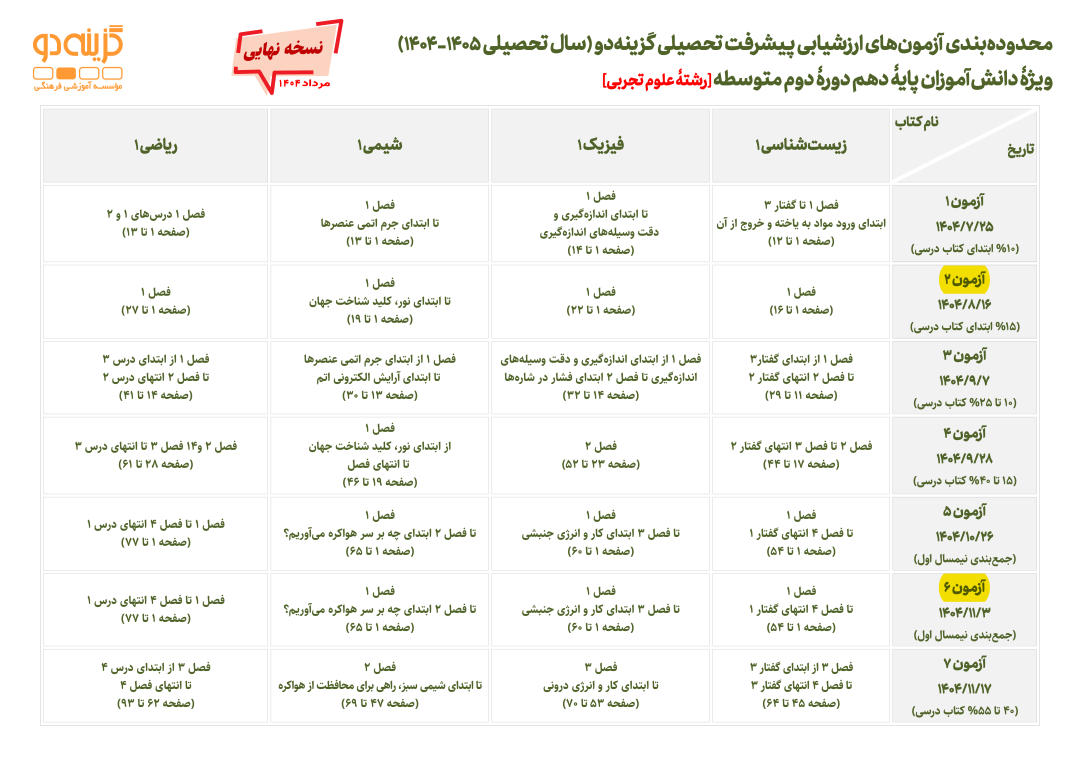 بودجه بندی آزمون گزینه دو - پایه دهم