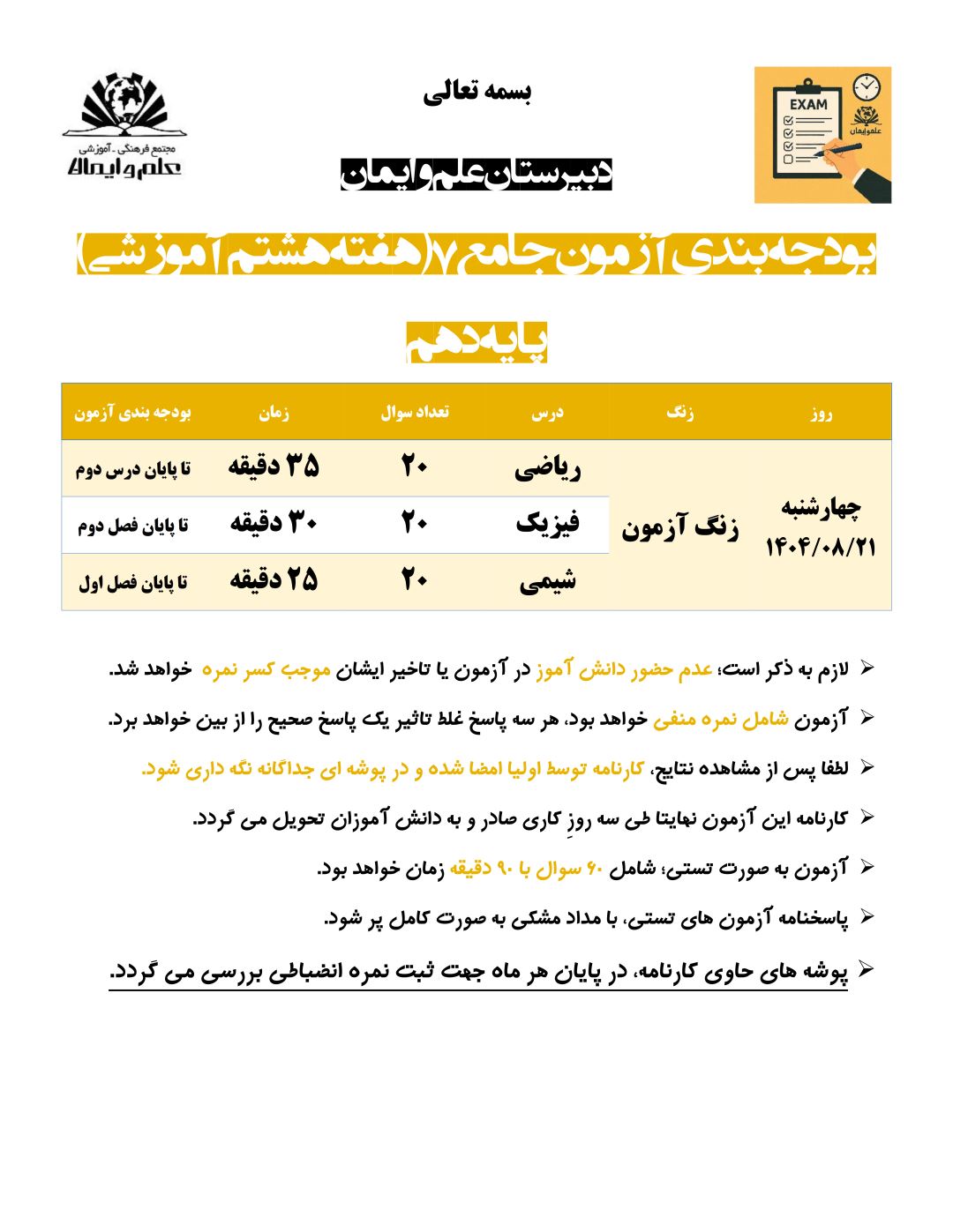 بودجه بندی آزمون جامع شماره 7 - حضوری