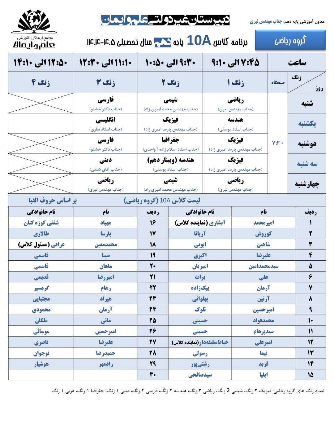 در صورت مجازی شدن هر یک از ایام هفته؛ برنامه آموزشی دبیرستان طبق فایل آپلود شده در LMS دبیرستان برگزار میگردد. لازم به ذکر است نام کاربری و رمز عبور هر دانش آموز کد ملی ایشان میباشد.